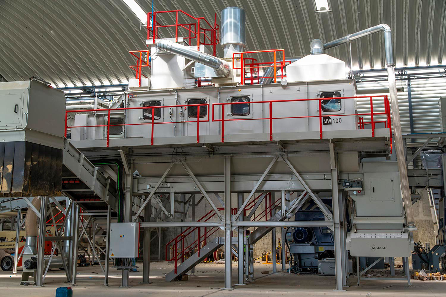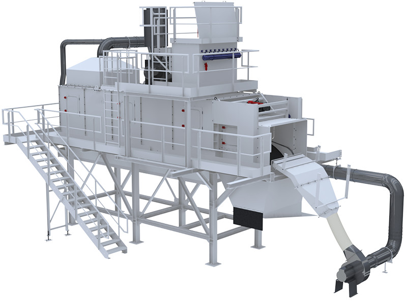 To adjust the separation efficiency and depending on the material to be treated, the equipment allows the speed of the output material, the position, the slope and the airblow system power of the conveyor belt to be fixed.The airblow system helps improving the separation of the light and heavy materials efficiency through the air impulsion. It has got a suction system with a dust filter and air recirculation which prevents dusting emissions from getting into the atmosphere.