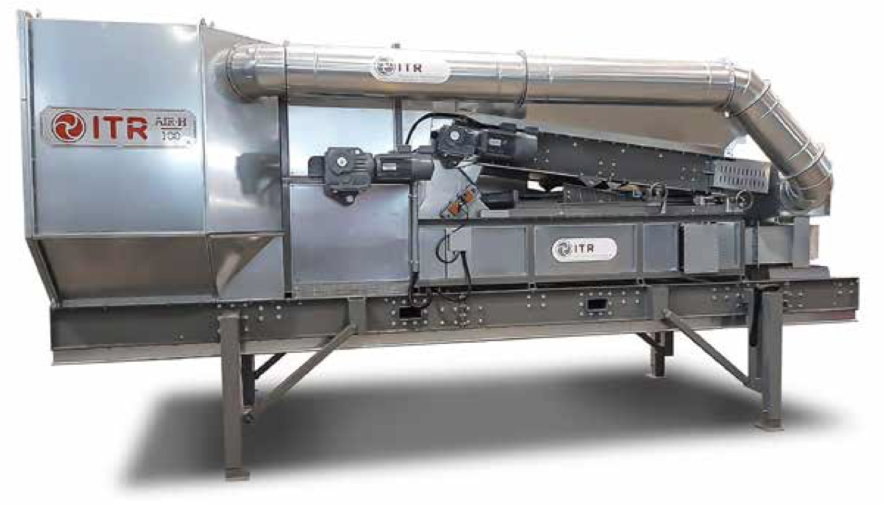 The aeraulic separators of the AIR H series are extremely versatile systems designed to enhance and separate the heavy fractions of the pre-shred- ded or screened waste from the light ones. The system is fully adjustable (con- trol of air flows and deflectors, of the belt speed, of the height and of the approach) and it is equipped with a precise process control that avoids expensive maintenance activities. The aeraulic machines of the AIR H se- ries are characterized by a compact design and they can be stationary or mobile as well as installed and inte- grated into existing systems.